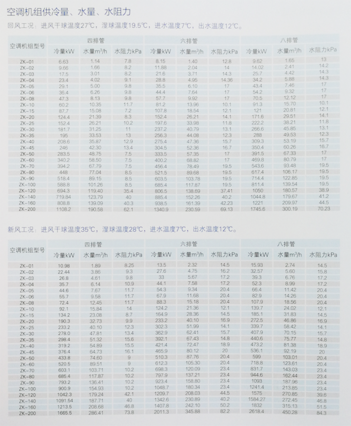 ZK系列組合式空調機組是經多年生產實踐,綜合國內外各生產廠家優點,采用最先進技術,大膽探索設計成功的高效、低耗系列產品,具有結構新穎、外觀美觀、功能齊全、組合靈活、運行平穩、設計簡潔實用、安裝、維護方便等優點。因此被廣泛用于體育館、會展中心、機場或大型車站、以及各類工業廠房如汽車、電子、紡織、醫藥、煙草、發電精密儀器等。 機組箱體為可拆拼裝板框式結構,保溫面板為雙層優質鋼板內填聚氨酯發泡或聚苯乙烯隔熱復合板,框架為特制鋼架或鋁合金制成,面板與框架之間有良好的密封措施,使機組漏風率降至最低,冷熱交換器采用紫銅管串波紋鋁翅片結構,科學的片距和水路行程,良好的加工工藝,使熱交換器具有換熱系數高、水阻力小、重量輕、使用壽命長等特點。 ZKJ凈化組合式空調機組是根據國際GB/T14294-2008,GB/T14296-2008《空氣冷卻器與空氣加熱器》標準和GB50736-2012《民用建筑供暖通風與空氣調節設計規范》標準,歐洲EN1886-1997標準,藥品生產質量管理范圍(簡稱GMP)和醫院潔凈手術部建設等相關潔凈室設計規范、標準的技術要求,研發實施了全新的思想理念——凈化細菌。現有的組合式空調機組存在著嚴重的內部菌塵污染僅靠增加空氣過濾的方法難以消除細菌的危害,無法滿足潔凈化體系的要求。 ZKJ凈化空調機組設計特別強調以綜合性措施對細菌進行全面控制,消除了滋菌的可能性。可設置新穎除菌裝置,方便、有效的定期消毒滅菌。ZKJ凈化組合式機組廣泛地運用于醫藥、生物、電子、醫院、食品、化工等具有潔凈環境要求的場所。 目前現代建筑為滿足舒適和工藝性兩方面的的要求越來越高,空調運行費用和足量的新風補充二者矛盾日趨上升。為了降低空調能耗和運行費用,在空調系統中盡量減少新風量的補充,因此造成室內空氣不能科學置換,CO2含量升高,空氣品質劣化。針對這一問題,本公司引領節能新時代,飛躍健康新紀元,閆志成集健康、節能、環保與一體的ZKN系列能量回收型組合式空調機組。次機組不但具有空調的一切功能,又有回收冷熱量的功能,很大程度上降低了運行費用,節約了能源,保護了環境,優化了空氣品質,創造了一個室內也能像沐浴在大自然中享受呼吸喜悅的理想空間。 空調機組左右式的確認,機組左右式判定方法:順氣流方形看進出水管的位置,在左側為左式,在右側為右式。 常用功能段組合方式:經濟型組合方式,混合初效段、表冷段、風機送風機段。一般工藝性組合方式,混合初效段、表冷段、中間段、加熱段、加濕段、送風機段。多功能凈化型組合方式:進風初效段、回風機段、板式能量回收段、中間段、表冷擋水段、中間段、蒸汽加熱段、送風機段、均流段、中效過濾段、消聲段、送風機段(臭氧發生斷) ZK組合式空調機組可設置多種功能段,新風初效過濾段、預熱段、回風段、熱盤管段、冷盤管段、風機段等功能段可供用戶選擇組合,重點介紹以下功能段: (1)冷盤管(熱盤管)段 冷盤管(熱盤管)段具有降溫降濕、擋水功能,亦可使用在對65℃以下的熱水進行空氣加熱,底部設有接水盤和冷凝排水管。 表冷器(換熱器)采用空調優質銅管穿鋁片工藝,整體機械漲管一次完成,管片結合緊密,傳熱效率高;運行維護、清潔方便。 翅片沖孔為雙翻邊,保證片間距均勻,考慮風阻、水阻、風機電機功率、換熱面積等因素,通過計算機輔助優化設計,使片間距達到最優值,水路流程設計保證不同尺寸換熱器的水速和進出水溫差保持在合理的范圍內,并從根本上解決了管內積水和淤氣的問題,表冷器的冷凝水排水口處設自動防倒吸裝置,可在負壓時順利排出冷凝水,保證用戶安全有效地使用。采用美國OAK的高速沖床沖制的翅片,沖片過程中加入的OAK油在翅片成型后自然揮發,不留油跡,在機組運行的標準風速下不帶水。 常規氣密檢測壓力為2.0MPa,運行最大工作壓力為1.6MPa。 另外,用于固定端板上的銅管穿孔設計成二次翻邊孔,允許換熱器的銅管在機組工作中能夠順暢位移,從而防止汽水撞擊、熱應力過大產生的銅管拉裂現象。 (2)風機段: 機組選用的風機為機械部定點空調風機廠商生產的雙進風前傾式低噪音離心風機。所有風機的葉輪均經過動平衡檢測,葉輪軸承使用低噪聲滾珠軸承,無需添油維護,使用壽命長。機組選用的風機噪聲低,氣動性能好,其葉輪與渦殼的連接結構,使得維護時更換葉輪軸承及電機非常方便。機組在風機下部裝有JG型橡膠剪切減震器,使得整個風機運轉震動小,噪聲低。 電機的絕緣等級為B級或F級,防護等級IP54或IP55;電機的接線電纜采用高強度保護套管及接頭保護,密封防濕性好。 (3)過濾段: 根據用戶的需要機組可裝有初效、中效和高效過濾器,對于一般要求的機組都裝有初效過濾器。 初效過濾器一般為板式結構,濾網外框為鍍鋅板壓型,兩面用壓型鍍鋅鋼板網加強,內部為非燃性濾料。過濾效率G3(計重效率≥60%),初阻75Pa,終阻150 Pa,過濾效率F5(計數效率50%;根據濾料的性能不同),中效過濾器的過濾效率最高可達F9。 (4)干蒸汽加濕段: 加濕原理:接通經減壓和過濾的飽和蒸汽源,飽和蒸汽在雙層噴管的外套內橫向流動,環向流入彎管,對中心噴管預熱,經折流板,進入蒸發室;由于蒸發室端面突然增大,使蒸汽流速降低,飽和蒸汽中所含的凝結水被分離出來,經蒸發室底部的冷凝水出口排出;分離出