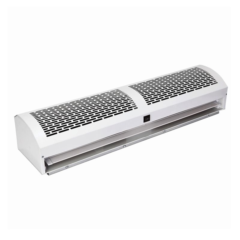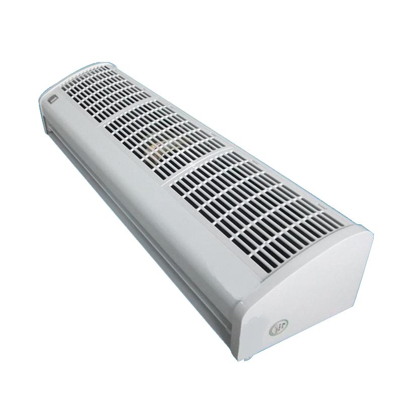 貫流式電熱空氣幕是在貫流空氣幕的進風口或出風口處加上電加熱器,利用貫流風機運轉帶出的熱氣流形成的熱空氣幕。
