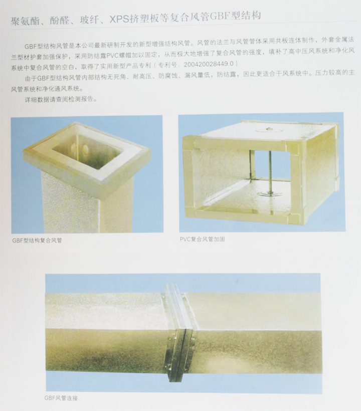 酚醛復(fù)合風(fēng)管中間層為酚醛泡沫,內(nèi)外層為壓花鋁箔復(fù)合而成。酚醛泡沫板與鋁箔復(fù)合制成夾芯板,然后加上專用法蘭配件,制成的酚醛復(fù)合風(fēng)管用于中央空調(diào)通風(fēng)。